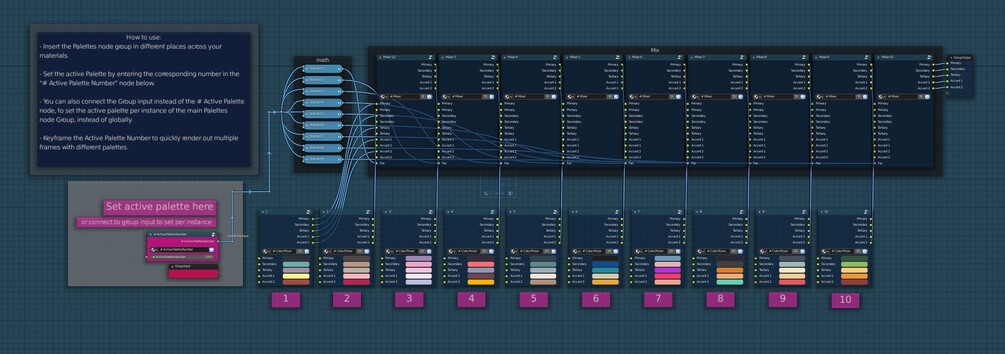 Palettes (Blender Shader Node Group) - switch palettes across multiple materials easily!